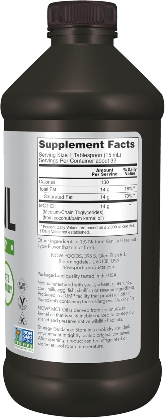 MCT Oil, Vanilla Hazelnut, 16 fl oz (473 ml) by NOW