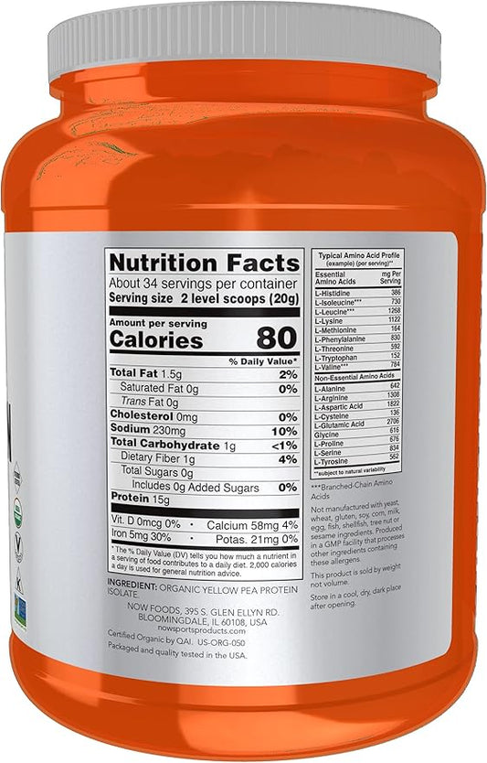 Organic Pea Protein Powder, Pure Unflavored, 1.5 lbs (680 g) by NOW