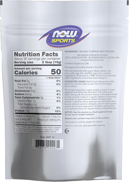 Organic Pumpkin Seed Protein Powder, Unflavored, 1 lb (454 g) by NOW