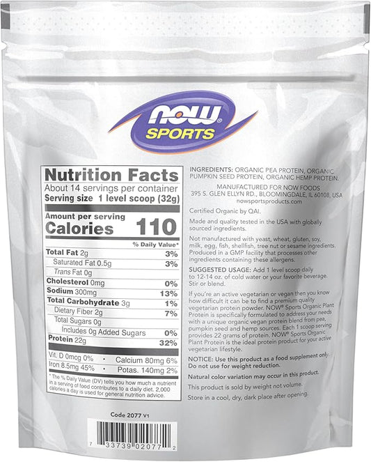 Organic Plant Protein Powder, Unflavored, 1 lb (454 g) by NOW