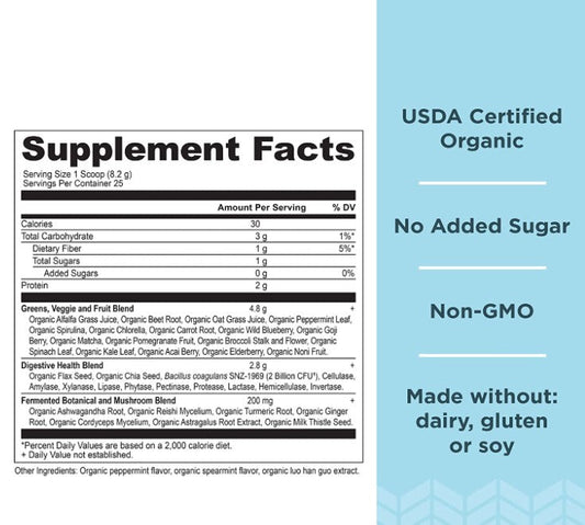 Organic SuperGreens Detox, Digest, Energize, Mint 7.23 oz (205 g), by Ancient Nutrition