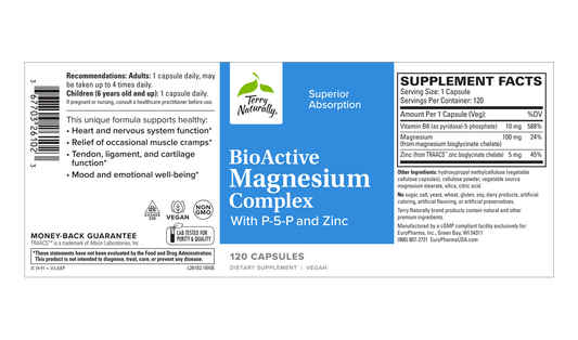 Terry Naturally BioActive Magnesium Complex with P-5-P/Mag and Zinc 120 Capsules