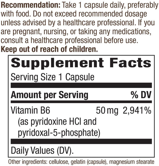 Vitamin B-6 Pyridoxine HCl 100 mg 100 Capsules
