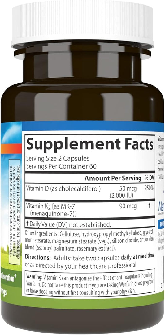 Vitamin D3 + K2, 50 mcg (2,000 IU) & 90 mcg 120 Vegetarian Capsules by Carlson