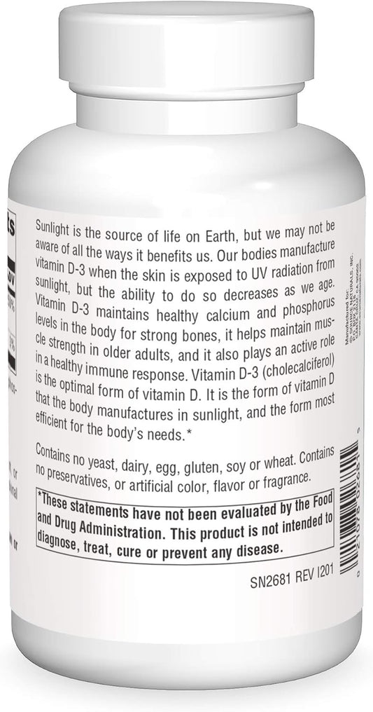 Vitamin D-3, 50 mcg (2,000 IU), 400 Capsules by Source Naturals