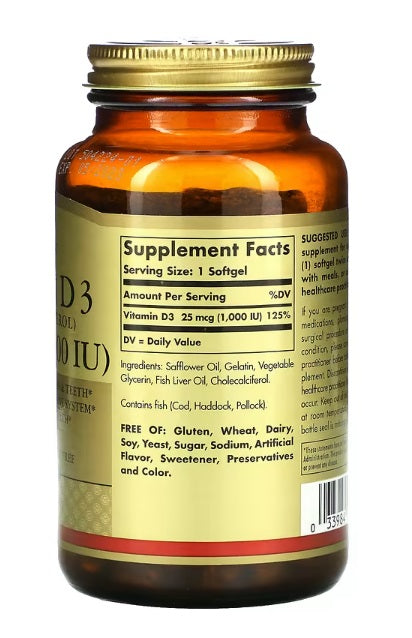 Vitamin D3 (Cholecalciferol) 25 Mcg (1000 IU) 100 Softgels