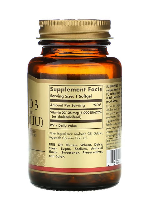 Vitamin D3 (Cholecalciferol) 125 mcg (5000 IU) 120 Vegetable Capsules