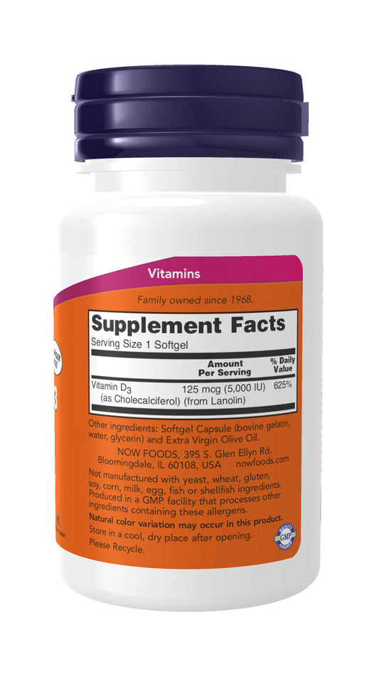 Vitamin D-3 5,000 IU - 30 Softgels, by NOW