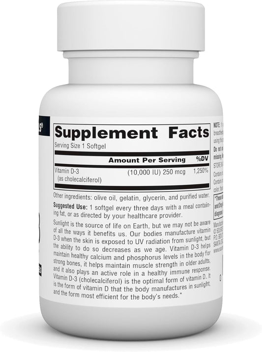 Vitamin D-3, 250 mcg (10,000 IU) - 60 Softgels by Source Naturals