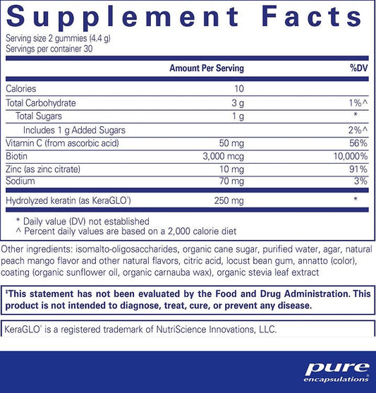 Hair/Skin/Nails Gummy, 60 Natural Peach Mango Gummies, by Pure Encapsulations