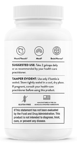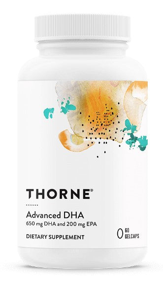 Because the body makes very little DHA or EPA naturally, it is essential that these fatty acids be acquired by diet or supplementation. Thorne’s Advanced DHA is a high-DHA/moderate-EPA fish oil supplement. Containing 650 mg DHA and 200 mg EPA per 2-gelcap serving, Advanced DHA is the perfect choice for cognitive support of the aging brain.*