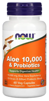 Aloe 10,000 & Probiotics, 60 Veg Capsules by NOW