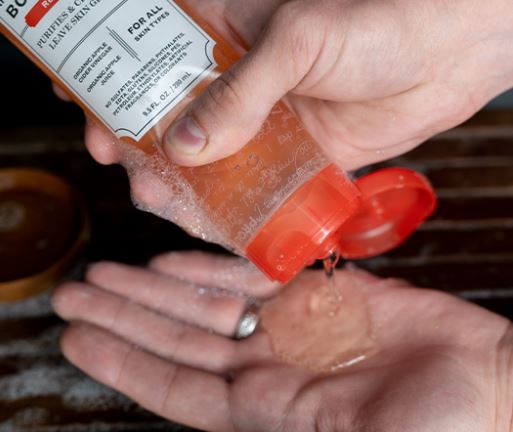 Ingredients: Water (Aqua), Cocamidopropyl Betaine, Sodium Cocoyl Isethionate, Apple Cider Vinegar*, Pyrus Malus (Apple) Juice*, Natural Fragrance, Citrus Aurantium Bergamia (Bergamot) Fruit Oil, Ocimum Basilicum (Basil) Oil, Citrus Grandis (Grapefruit) Peel Oil, Abies Sibirica Oil, Lavandula Augustifolia (Lavender) Oil, Citrus Medica Limonum (Lemon) Peel Oil, Citrus Nobilis (Mandarin Orange) Oil, Citrus Reticulata (Tangerine) Leaf Oil, Glycerin, Panthenol, Glyceryl Caprylate, Sodium Benzoate, Glyceryl Undecylenate, Citric Acid, Sodium Chloride
