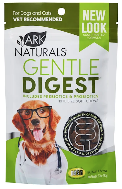 Product Facts:For Dogs and Cats 12 weeks of age and older.Gentle Digest helps promote growth of friendly bacteria in pet's digestive tract. Gentle Digest uses live microencapsulated spores, with chicory, a recognized probiotic (a source of FOS) to ensure delivery.