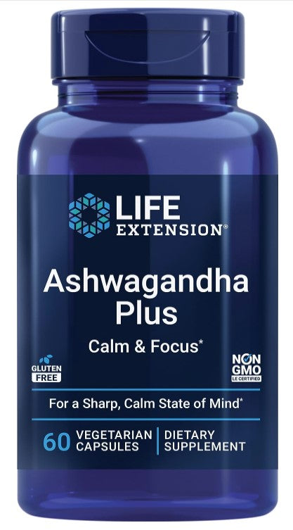 Ashwagandha Plus Calm & Focus 60 Vegetarian Capsules, by Life Extension