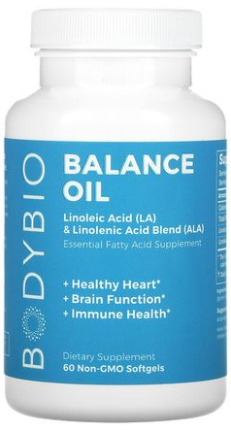 Balance Oil, Linoleic Acid (LA) & Linolenic Acid Blend (ALA), 60 Non-GMO Softgels, by BodyBio