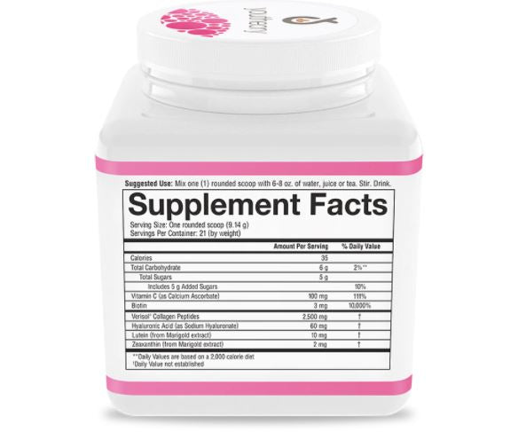 Youtheory® Beauty Powder is enhanced with vitamin C and biotin — two essential beauty nutrients. Vitamin C is a powerful antioxidant compound and a critical cofactor for converting proline to hydroxyproline – an amino acid that is critical for collagen formation inside the body.* Biotin is highly prized for its beauty benefits and shows promise in the areas of hair and nail health.