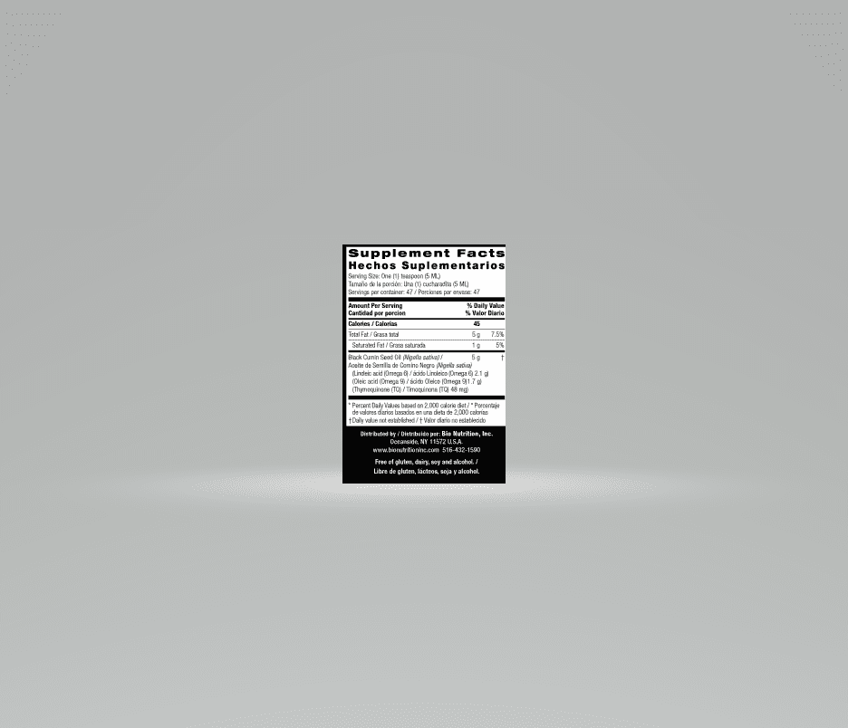 Bio Nutrition Premium Black Seed Oil is naturally a rich source of Essential Fatty Acid's and contains thymoquinone, a compound with antioxidant qualities.