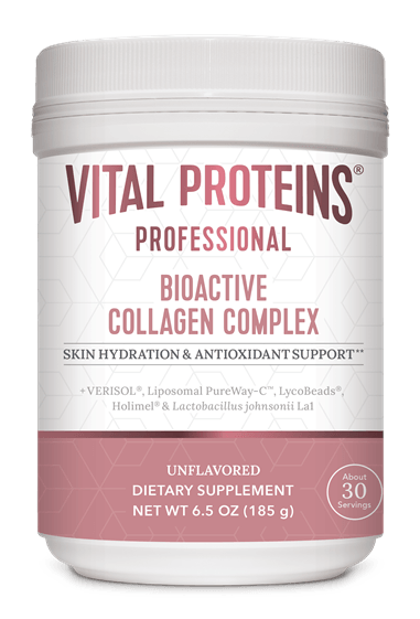 BIOACTIVE COLLAGEN COMPLEX Skin Hydration and Antioxidant Support** offers a clinically-backed, comprehensive approach to skin health**. Developed with a team of leading nutrition experts, this daily supplement is made with clinically-demonstrated amounts of functional ingredients, including VERISOL®, PureWay-C™, Holimel® and LycoBeads®, designed to support skin structure and hydration, and increase its resilience to environmental stressors*