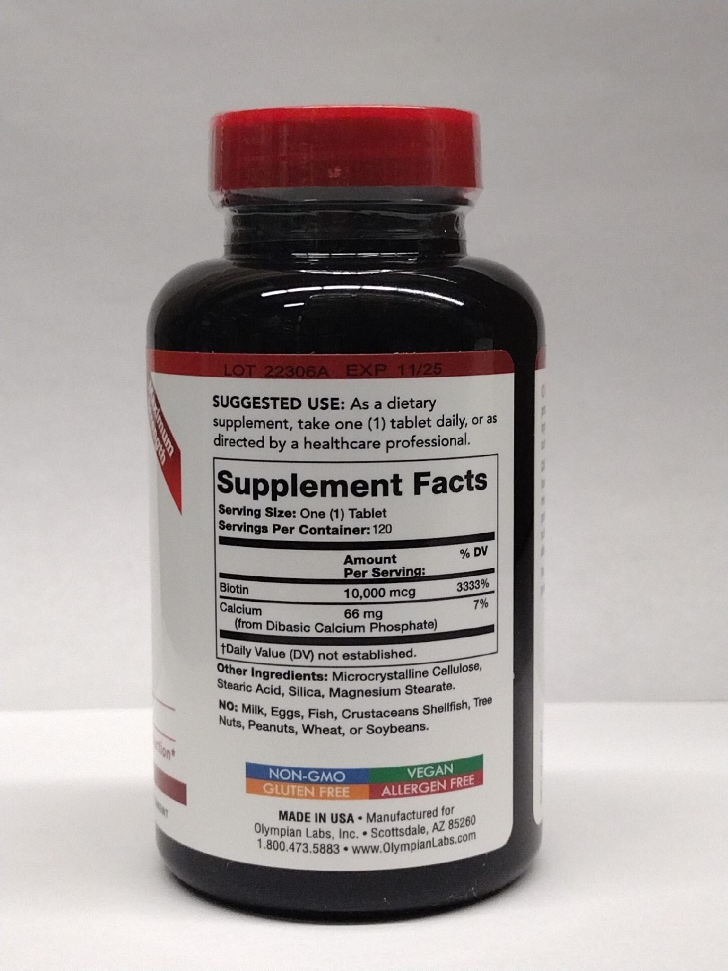 Biotin 10,000 mcg 120 Tablets, by Olympian Labs