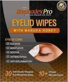Blephadex Pro, 30 Cleansing Eyelid Wipes with Manuka Honey, by Lunovus