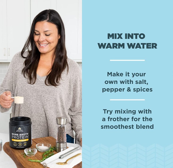 Bone Broth Protein is a nutritional powerhouse with all the benefits of an ancient superfood. This warming, satiating sipping broth that supports an overall healthy metabolism and gut.