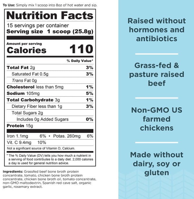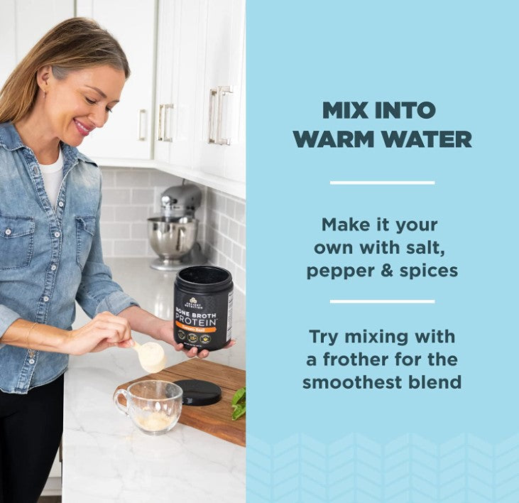 Bone Broth Protein is a nutritional powerhouse with all the benefits of an ancient superfood. This warming, satiating sipping broth supports an overall healthy metabolism and gut.
