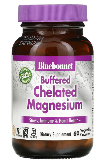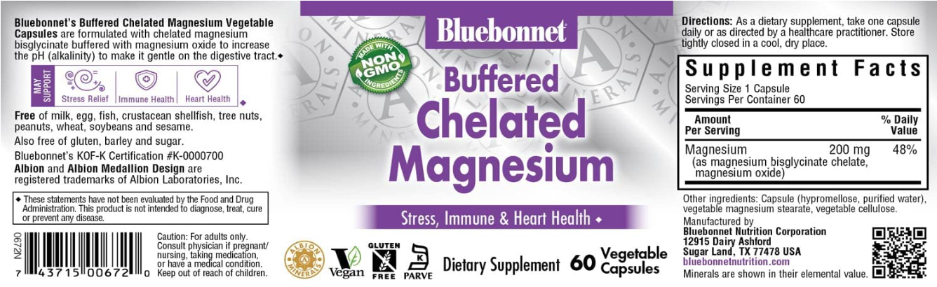 Buffered Chelated Magnesium, 200 mg 60 Vegetable Capsules, by Bluebonnet