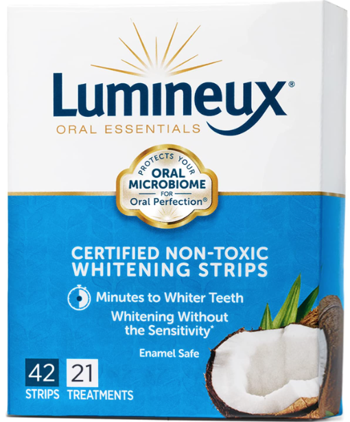 Lumineux Whitening Strips help whiten teeth up to 12 shades using only naturally derived ingredients like Dead Sea salt, aloe vera, coconut oils and a mix of essential oils that are enamel safe, certified non-toxic and dentist formulated.