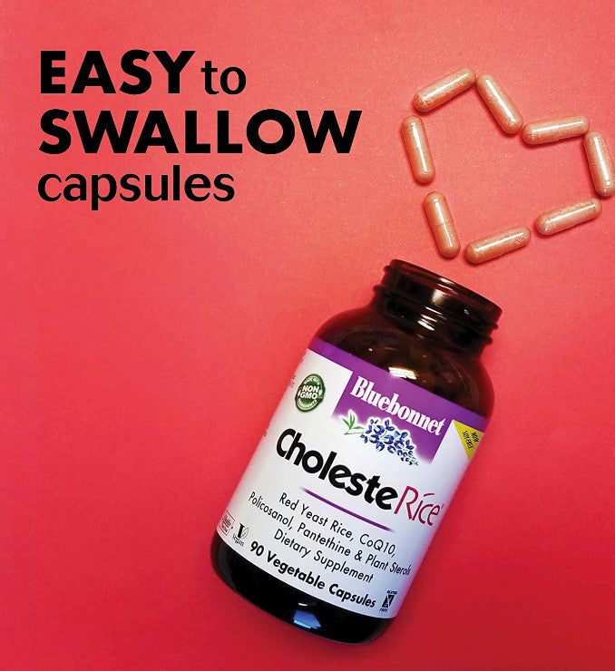 Bluebonnet's CholesteRice® Vegetable Capsules are formulated with red yeast rice, sunflower sourced plant sterols, pantethine, trans-isomer coenzyme Q-10 and sugar cane wax derived policosanol. This unique formula helps to maintain cholesterol levels that are already within the normal range.