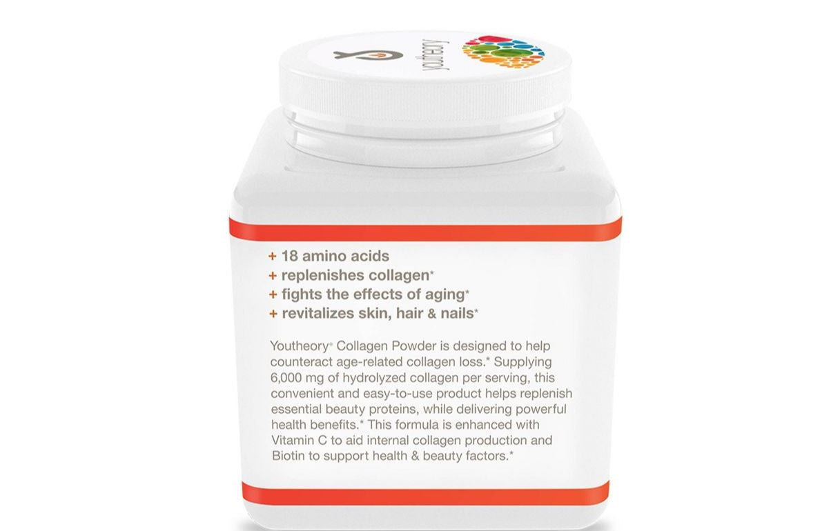 Youtheory Collagen Powder is designed to help counteract age-related collagen loss. Supplying 6,000 mg of hydrolyzed collagen per serving, this convenient and easy-to-use product helps replenish essential beauty proteins, while delivering powerful health benefits. This formula is enhanced with vitamin C to aid internal collagen production and Biotin to support health & beauty factors.