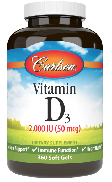 Carlson Vitamin D3 2,000 IU (50 mcg) is the preferred form of vitamin D that's important for promoting strong bones and supporting immune system and heart health. Higher levels of vitamin D3 in the blood are associated with strong bones and good health, as well as a strong immune system. Each soft gel provides 2,000 IU (50 mcg) of vitamin D3.