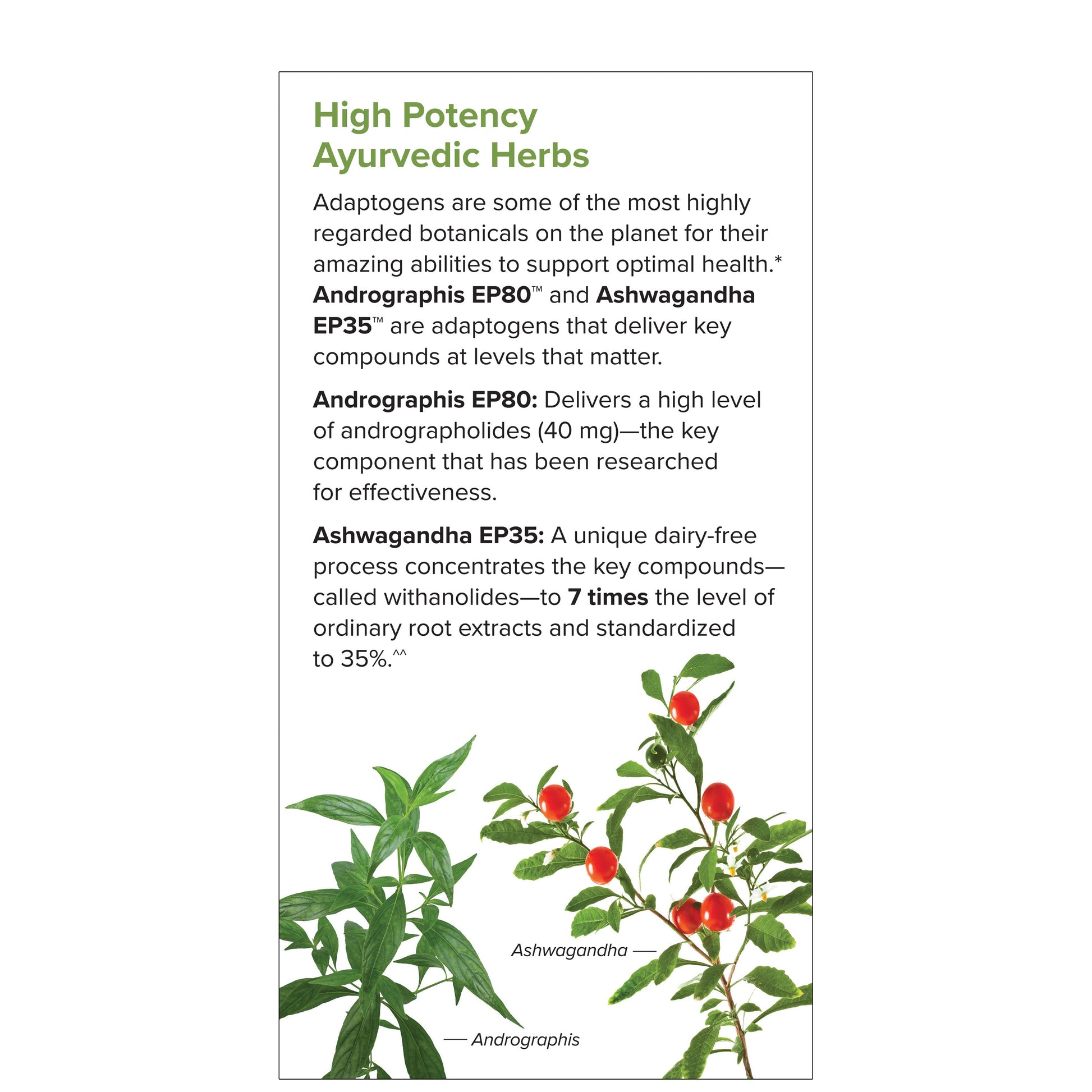 High Potency Ayurvedic Herbs: The Andrographis EP80 and Ashwagandha EP35 featured in this formula are clinically studied ingredients that deliver key compounds at levels that matter.