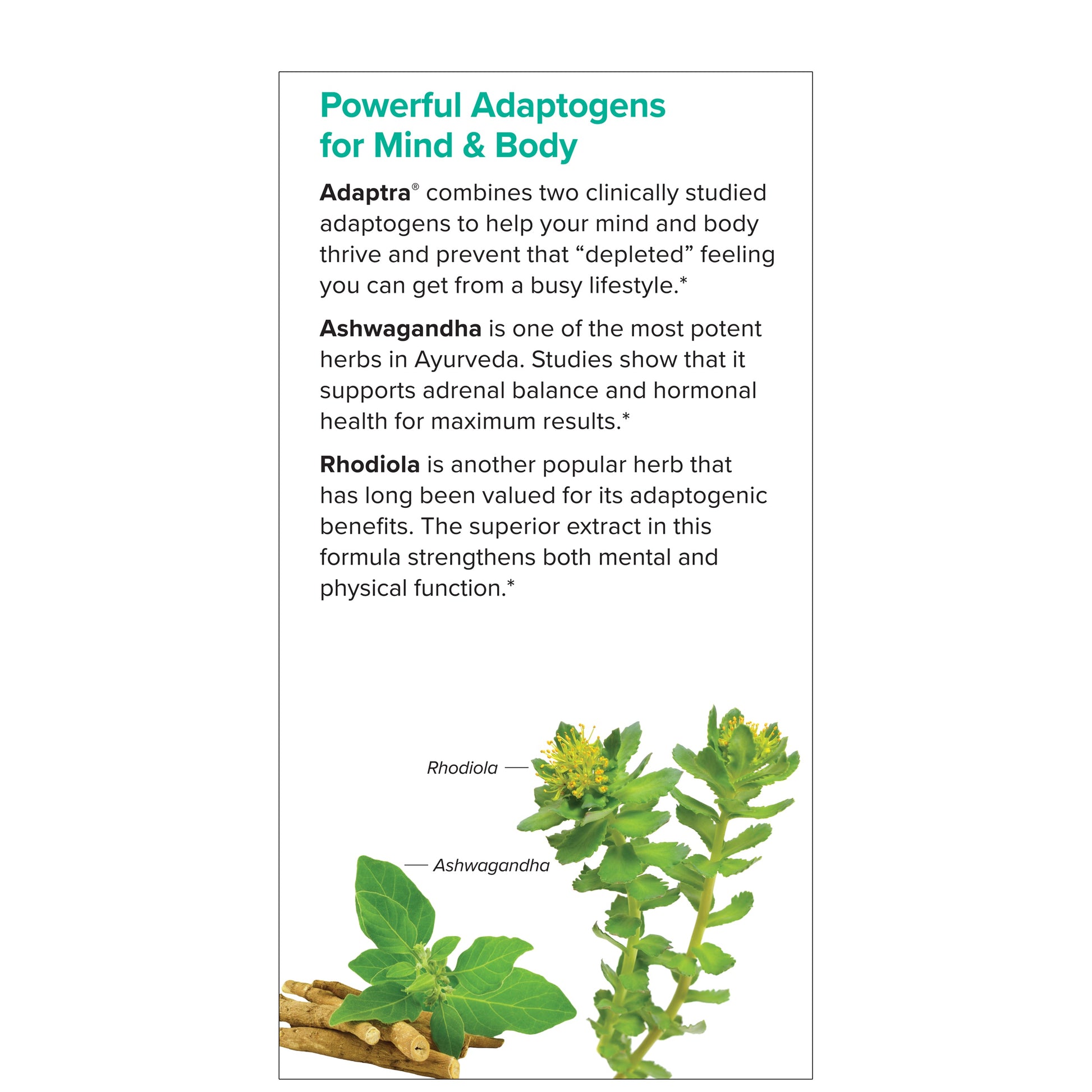 Adaptra combines two clinically studied adaptogens to help your mind and body thrive and prevent that "depleted" feeling you can get from a busy lifestyle.