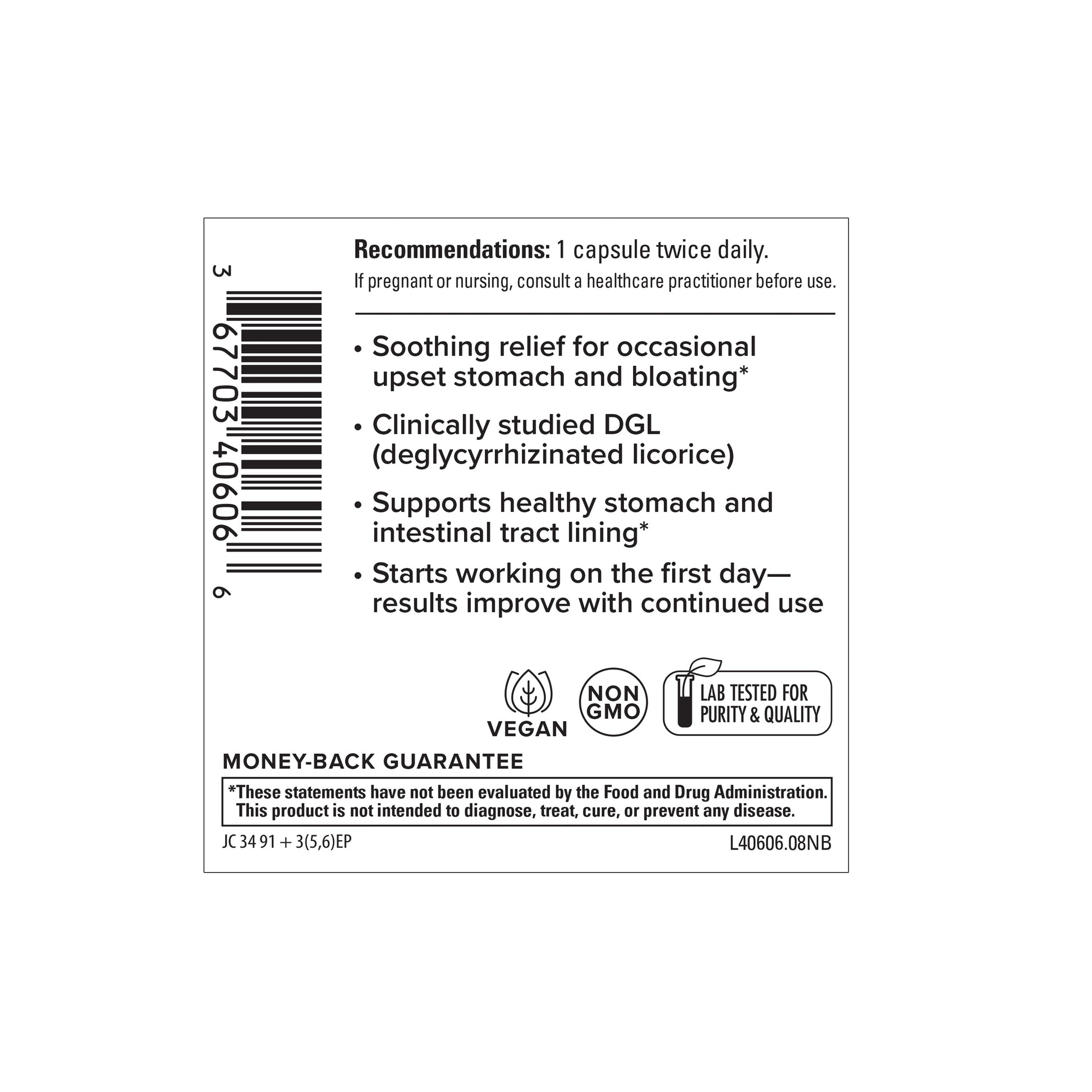 Stomach & Intestinal Relief delivers DGL that, unlike traditional DGL supplements, does not need to be chewed in order to be beneficial.* Plus, this capsule form is convenient in other ways too—there's no need to remember to take it just before meals—it's an effective DGL any time of day!
