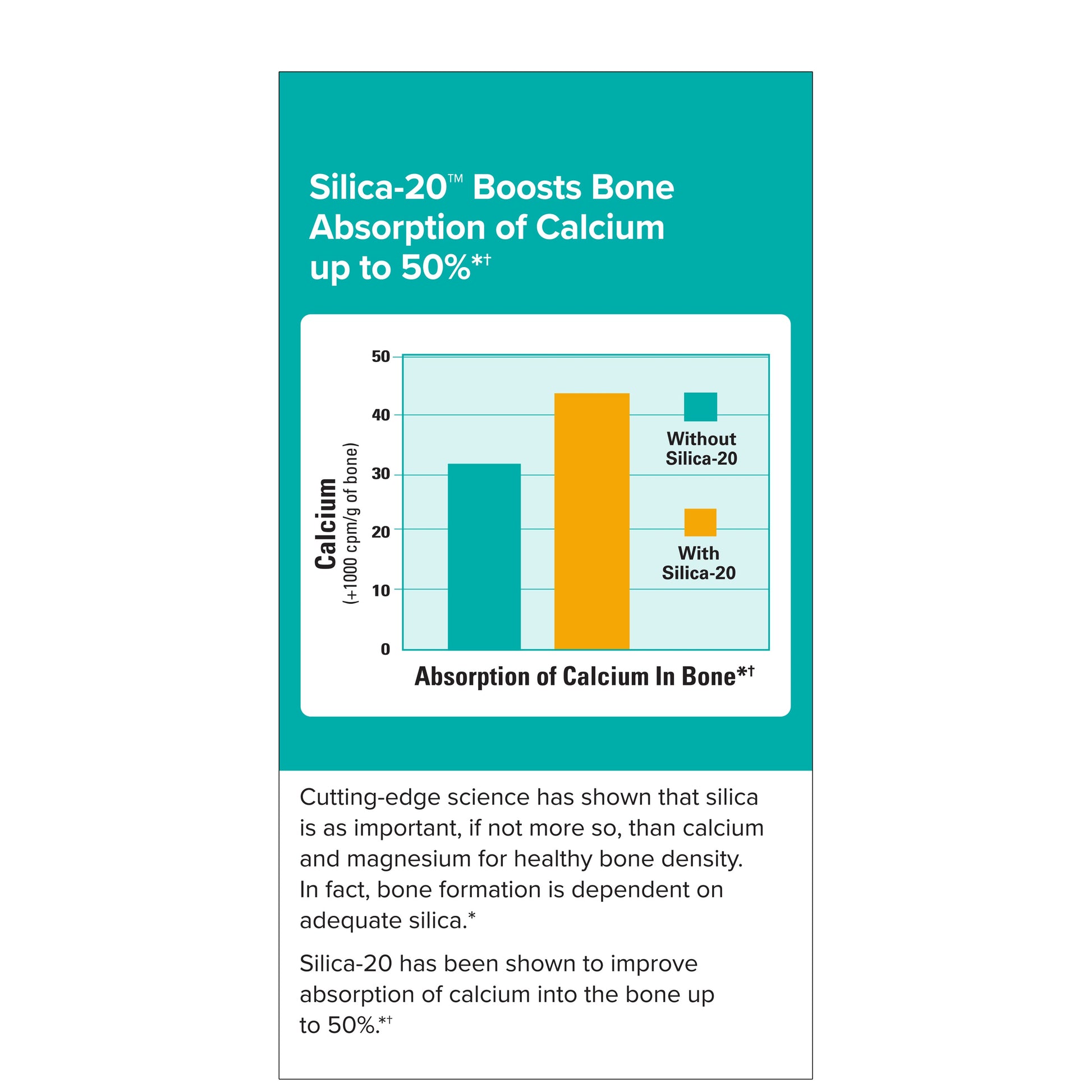 Silica-20 has been shown to improve absorption of calcium into the bone by 50%.†