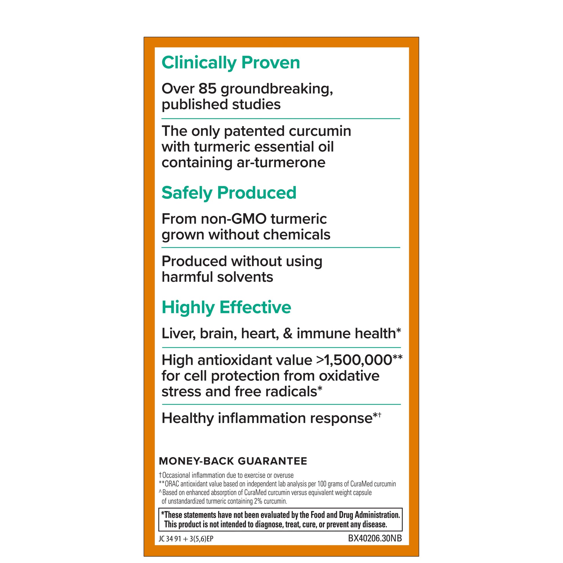 - One CuraMed softgel provides curcumin benefits equivalent to up to 500 capsules of turmeric