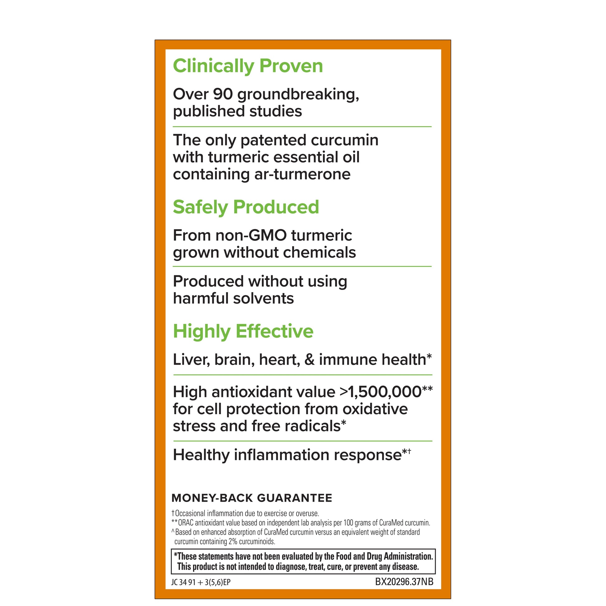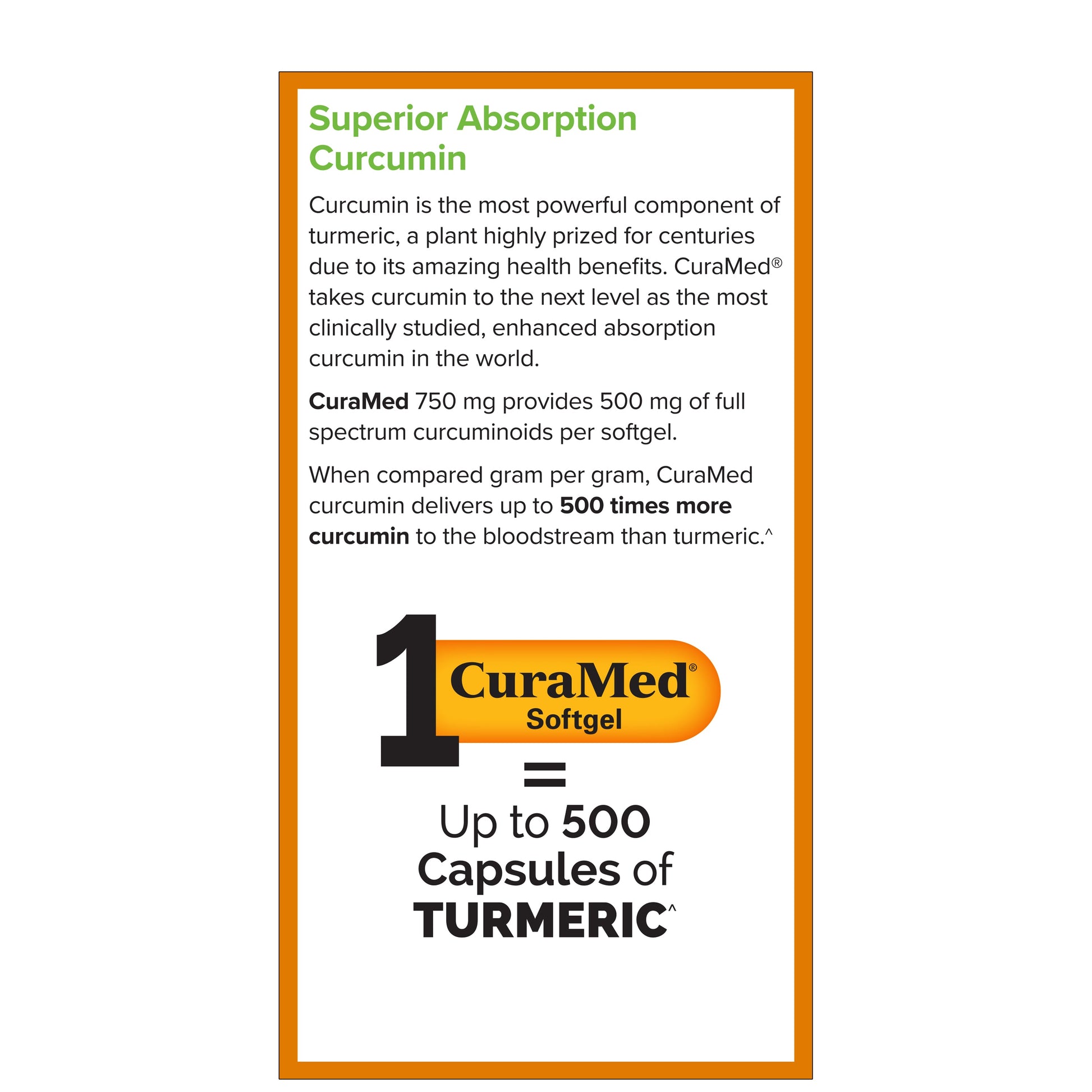 - One CuraMed softgel provides curcumin benefits equivalent to up to 500 capsules of turmeric