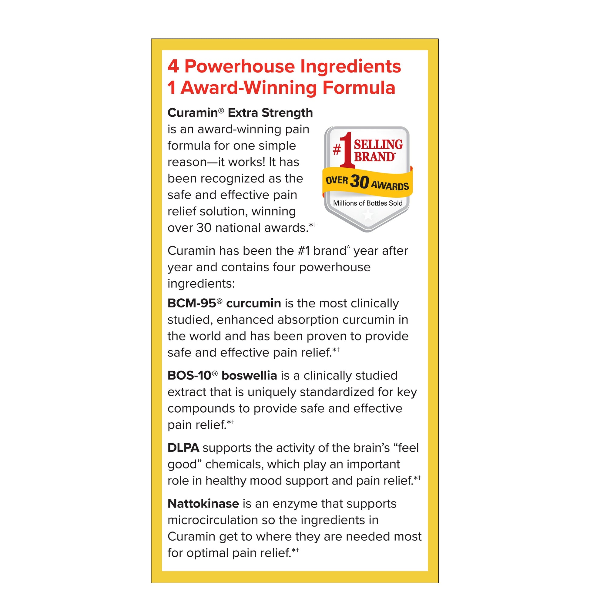 Millions of bottles of Curamin have been sold worldwide for one simple reason - it works! It has been recognized by the natural products industry and consumers alike as an amazing pain relieving product.† Winning over 28 national awards, Curamin Extra Strength has been voted #1 year after year.