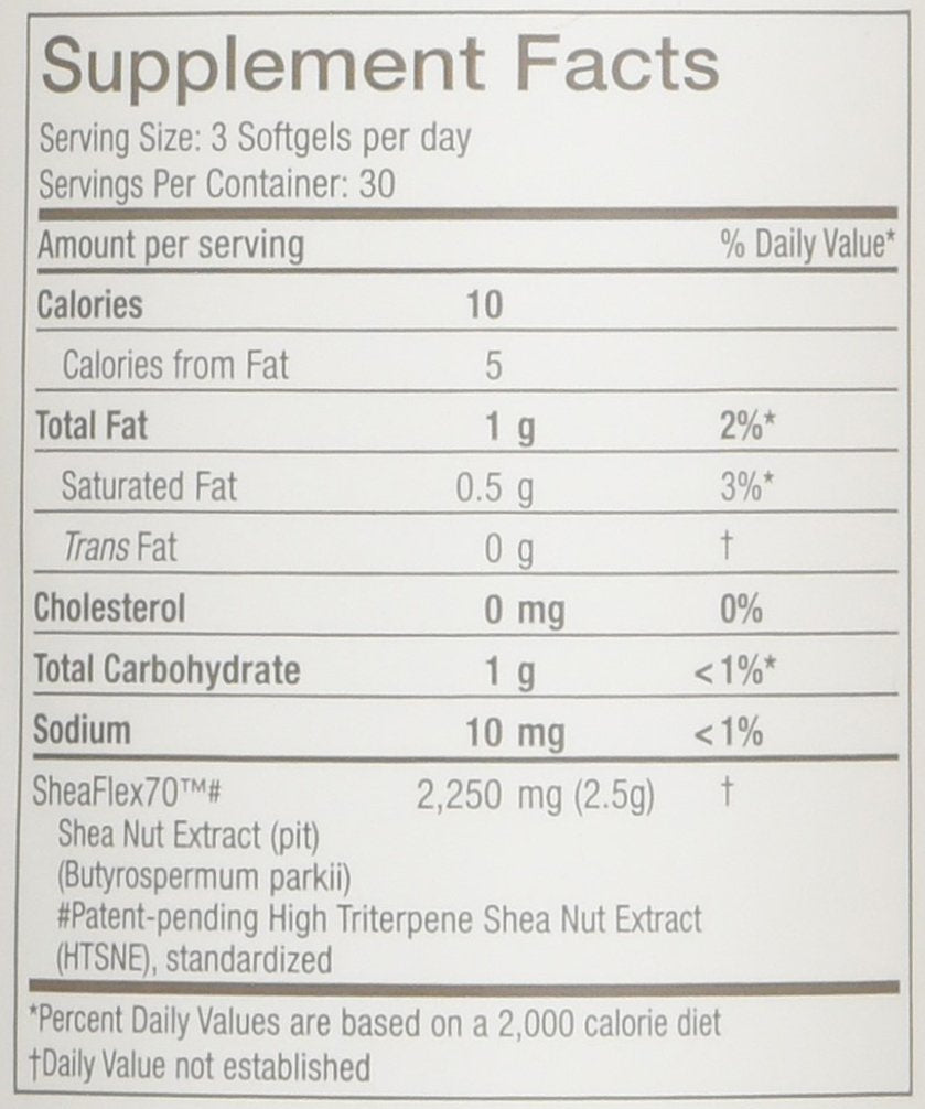 FlexNow with 100% SheaFlex70 is a patented, highly concentrated extract of the shea fruit.