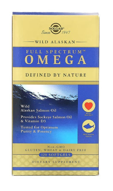 Solgar Full Spectrum Omega Wild Alaskan Salmon Oil Softgels are carefully manufactured from Wild Alaskan Salmon that were sustainably caught from the pristine, cold waters of Alaska. These softgels go through a purification process to ensure removal of heavy metals, including mercury, while still maintaining optimal integrity of the oil and potency.