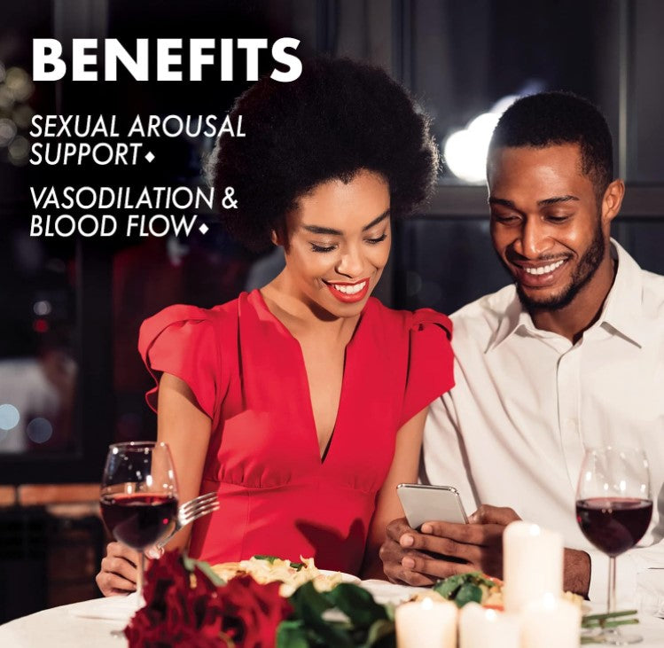 Helps to support sexual arousal and intensify orgasm by increasing vasodilation and blood flow, as well as boosting nitric oxide (NO) levels. Formulated for both men and women who are looking for a wholesome solution to enhance libido and stimulate sexual chemistry. *