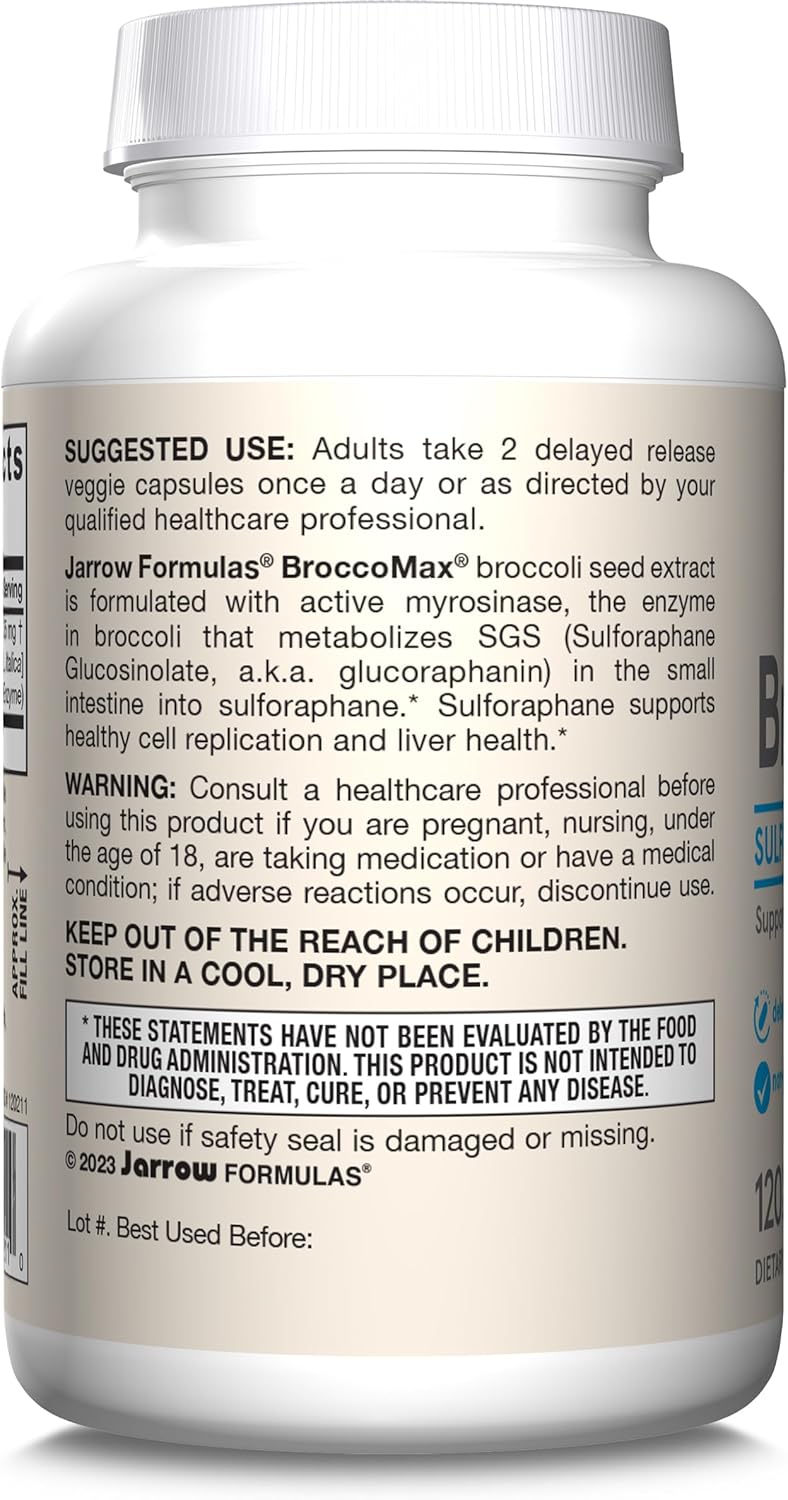 BroccoMax broccoli seed extract is manufactured using a patented process that preserves myrosinase, the enzyme in broccoli that metabolizes SGS (Sulforaphane Glucosinolate, a.k.a. glucoraphanin) in the small intestine into sulforaphane.