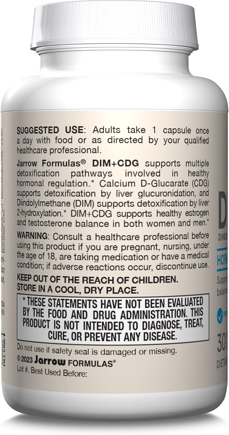DIM + CDG supports multiple detoxification pathways involved in healthy hormonal regulation. Calcium D-Glucarate (CDG) supports glucuronidation, which is an important pathway in detoxification. BioResponse DIM provides the cruciferous indole, Diindolylmethane (DIM), which is also involved in the liver's natural detoxification process. DIM + CDG supports healthy estrogen and testosterone balance in both women and men.