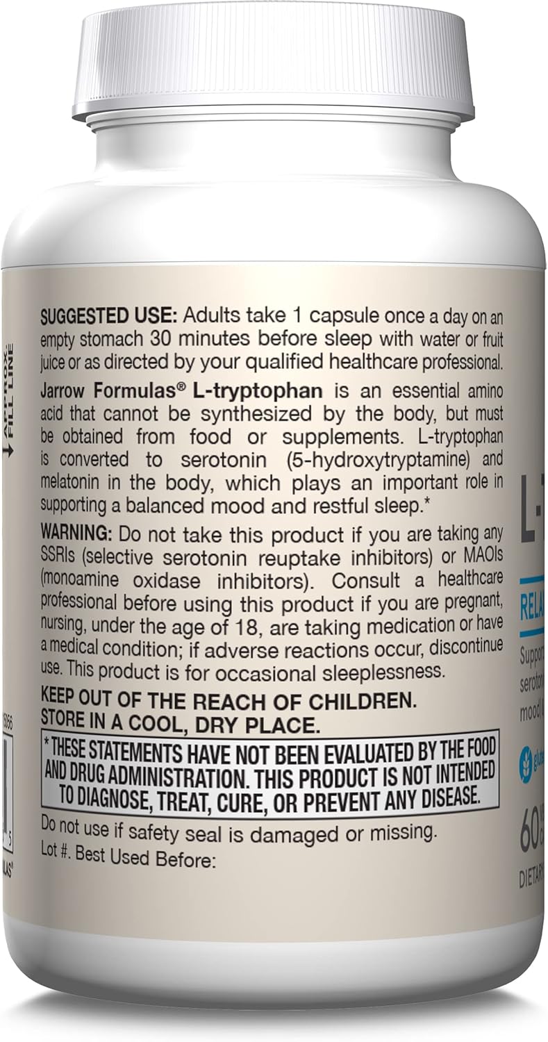 L-tryptophan may also help in reducing carbohydrate cravings. Jarrow Formulas L-Tryptophan TryptoPure is manufactured at a GMP facility via fermentation of vegetable materials.