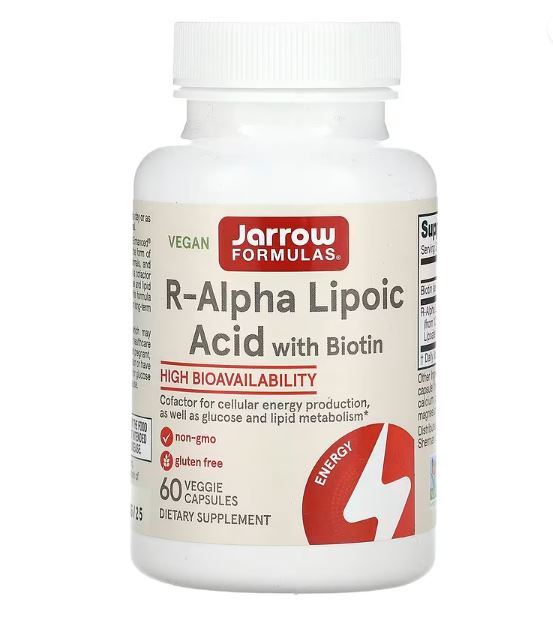 Jarrow Formulas Stabilized R-Alpha Lipoic Acid (Bio-Enhanced Na-RALA) is R-(+)-Alpha Lipoic Acid (RALA). It is heat and shelf stable and exhibits high bioavailability. Most alpha-lipoic acid supplements are racemic (i.e., they include equal amounts of the [R] and [S] forms). However, only RALA is the form found naturally in the body. RALA is a unique cofactor in energy production and helps regulate glucose and lipid metabolism. RALA promotes the synthesis of glutathione and the induction of Phase II detoxification enzymes in the liver. d-Biotin is a natural cofactor and may complement RALA in promoting mitochondrial health.