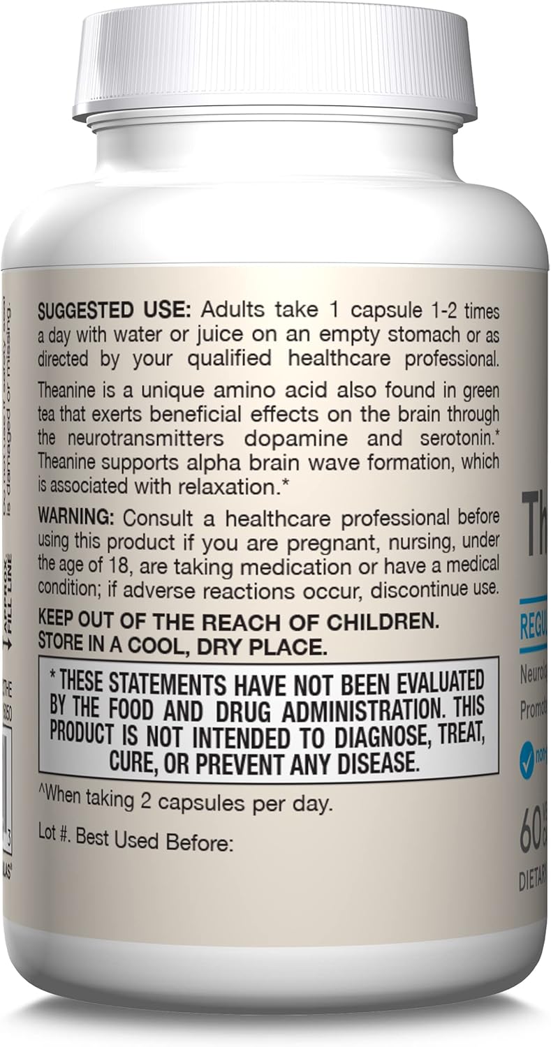 Jarrow Formulas Theanine is made enzymatically from amino acids and is identical to the theanine found in green tea.