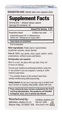 Kyo-Dophilus® Fifty+ Probiotic was formulated with older adults in mind. As we age, changes to diet, activity levels, medication use and increased inflammation can cause the microflora of our GI system to diminish. Daily use of Fifty+Probiotic can help restore good bacteria and elevate immune system effectiveness.