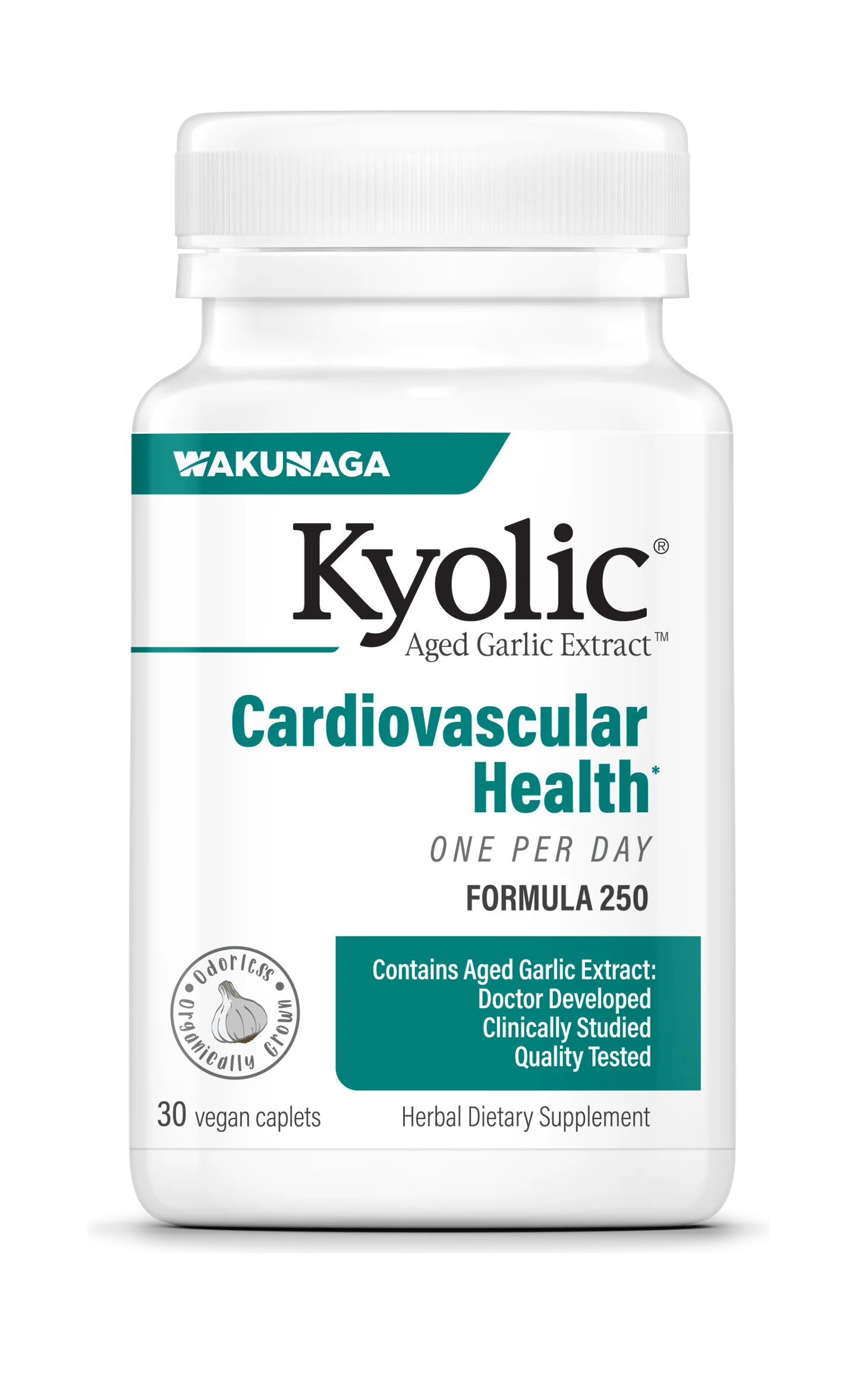 Kyolic Aged Garlic Extract begins with organically† grown garlic bulbs. They are then aged to perfection in a unique extraction process to eliminate odor and crate beneficial compounds found only in Kyolic. Kyolic One Per Day helps maintain healthy circulation, normal cholesterol, homocysteine levels and overall cardiovascular health in one convenient caplet.