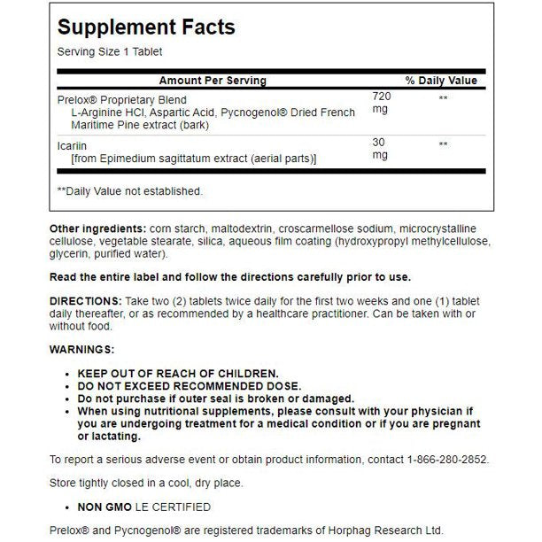 2. L-Arginine is the biological precursor to nitric oxide synthesis in the endothelium. It interacts synergistically with Pycnogenol to sustain nitric oxide levels sufficient for healthy sexual function.